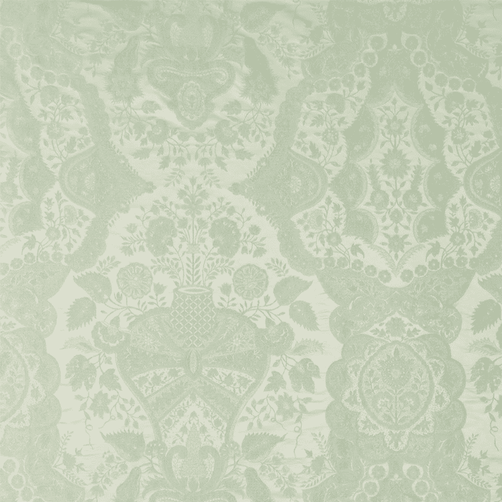 From a document inspired by the Indies and kept in the archives of the Maison, this floral pattern takes the idea of a lace decoration. Originally printed, it is reinterpreted here in a beautiful damask quality on silk warp and cotton weft. The luster of its weave and the contrasts of its materials subtly reveal all the character of this dream fabric.