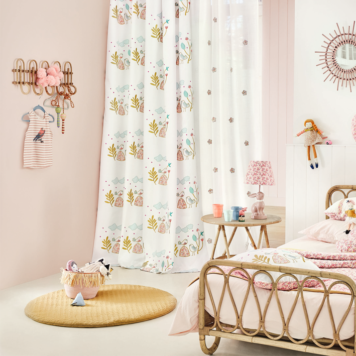 "Rose & Jeanne” chirp happily on this delicate, “Liberty” style floral. These 2 pretty birds will delight little girls who will adore their colours, embroideries and girly patterns. The small flowers are truly timeless, cheerful and teasing. The different colours of the theme create infinite possibilities to create a wonderful world : the one she has been dreaming of !