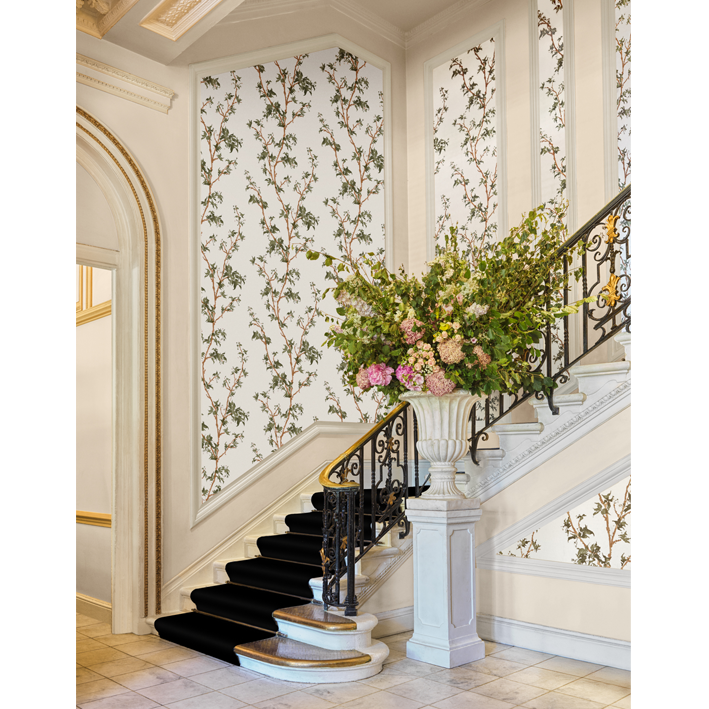 Chinese Branch captures the watercolour nature of brush painting, an art that spans thousands of years of tradition. Its delicate, painterly detail evokes a tranquillity in elemental tones of Leaf Green, Sage, Blossom Pink, and Duck Egg with an autumnal Ginger.