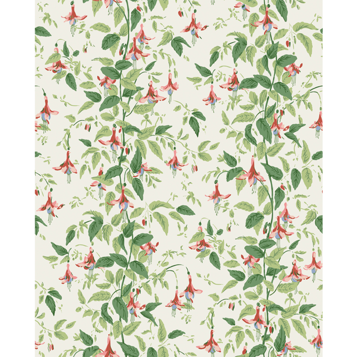 The rainfall composition of Fuchsia’s lantern-like flowers and leaves conjures the sense of a golden afternoon; the floral boughs coming to life in the breeze with a stillness only found in nature.