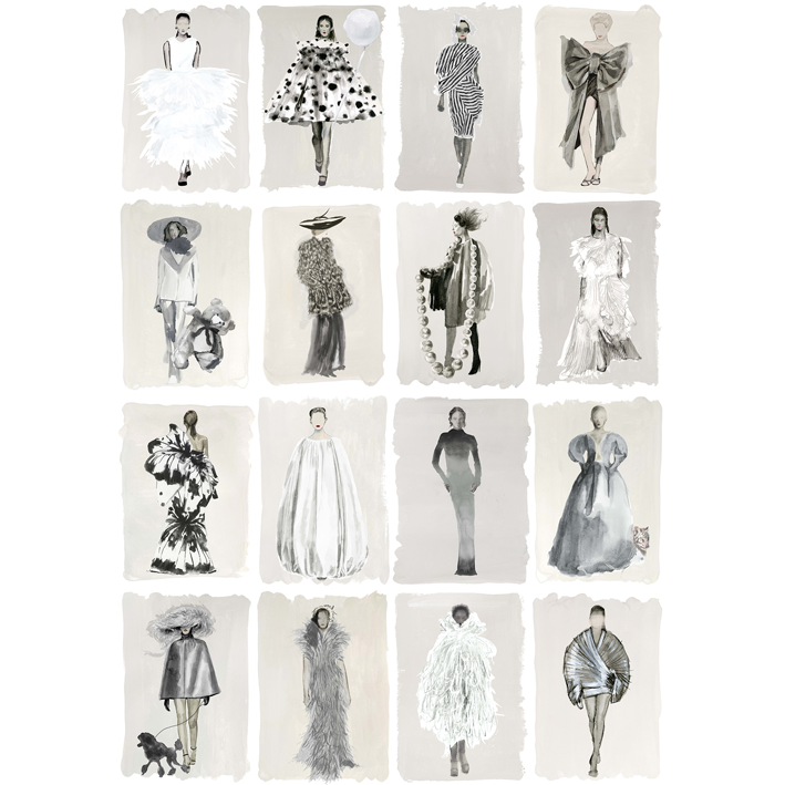 Hand-drawn and hand-painted at Cole & Son's Chelsea flagship, each of the 16 Couture Carousel 'fashionistas' represent an era in haute couture; from the 1950s and 60s, characterised by glamorous design, to the bold looks of the 1980s and 90s, where fashion was more experimental and avant-garde.