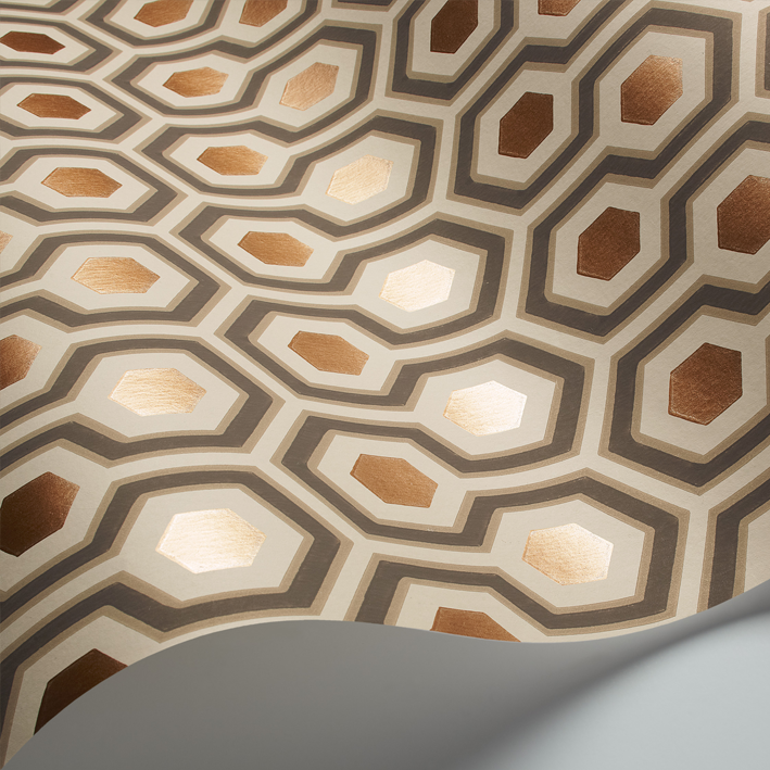 Hicks' Hexagon Soot & Metallic Bronze on Linen
