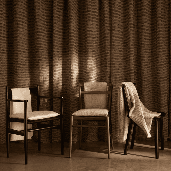 Artisanal alpaca and wool yarns are woven into the face of this natural linen fabric to create a distinctive curvaceous structure. The ground cloth is completely unbleached and undyed, so slight natural colour variations occur with each flax crop. A specialist stonewashed finishing process creates a beautiful soft handle and heavy drape, which creates wonderfully full curtains. Designed to complement the fabric named Kyoto, Nara is also suitable for upholstery and is Masters of Linen certified.