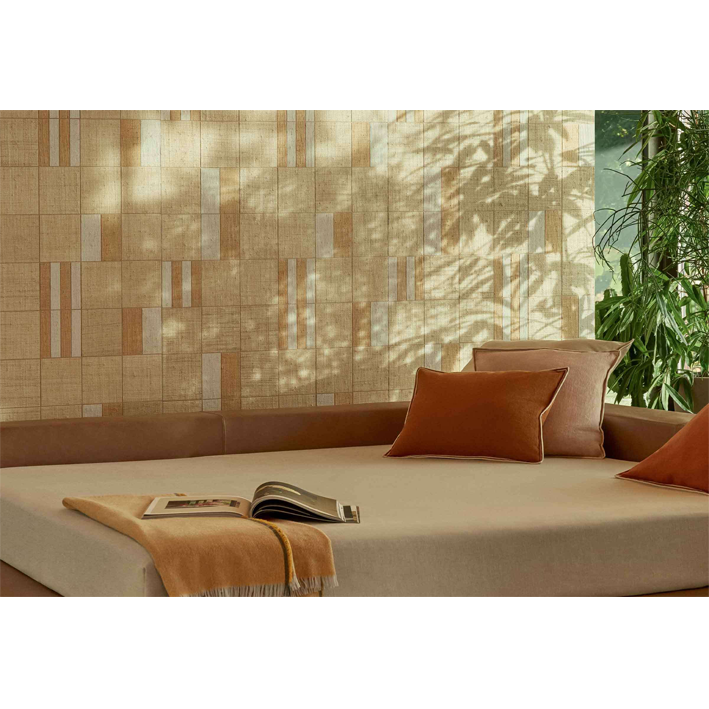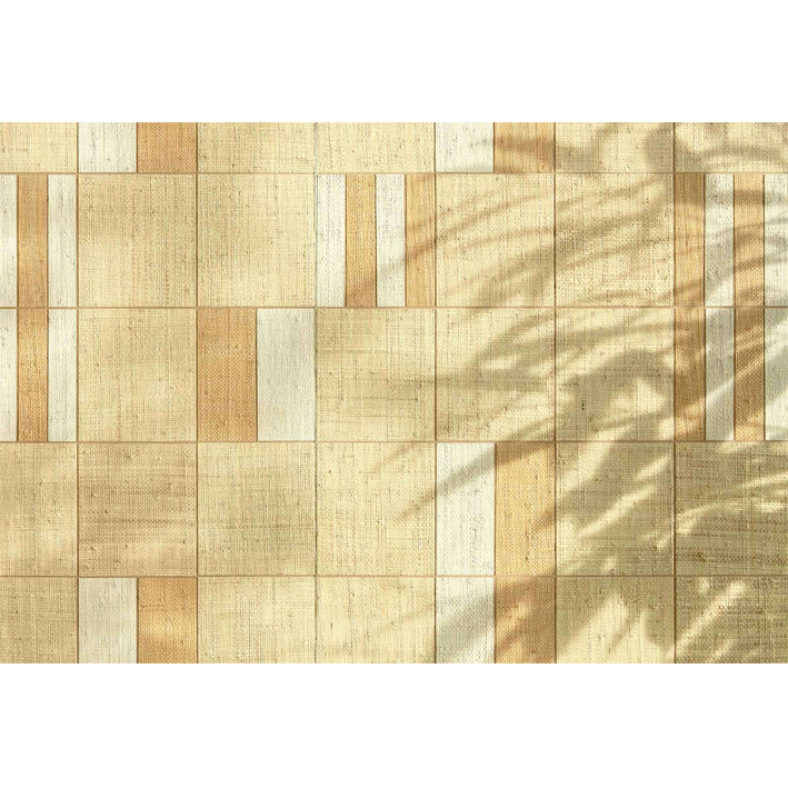 This 100% natural fibre collection shows raffia in a new light. In contrast to its more “raw” signature incarnations, it expresses a very contemporary universe where the inspirations of painters and great architects mingle through a resolutely graphic approach: geometric layouts. Motivated by the layout work found in Essence de Bois, we composed these real puzzles piece by piece, positioning and repositioning the cut-outs at will to create dense, graphic and rich imaginary universes. The workshop to which we have entrusted the manufacturing performs incredible workmanship on each creation, by hand, element by element.