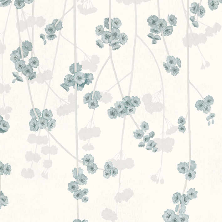 Surrender to the calm and serenity of Sakura blooms with the Cherry Blossom wallpaper by contemporary artist Joanna Charlotte. This beautiful Sakura wallpaper is perfect as a bedroom wallpaper, or to create a romantic dining room. In its Vintage White colour, the Cherry Blossom wallpaper has a warm white background with grey and teal floral highlights.
