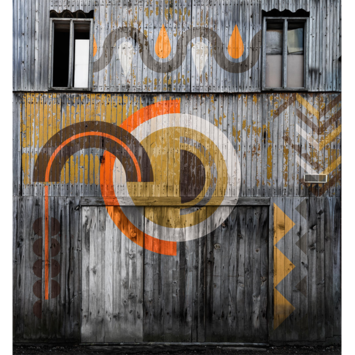 On a background of a wall with magnificent century-old boards were painted, long ago, geometrical shapes with unknown meanings. Ochres, earth of fire, browns and oranges, they were discovered perhaps in the depths of Mexico. Result: a confusing panoramic wallpaper!
