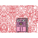 ARBRE ET OISEAUX ROSE SUR ROUGE