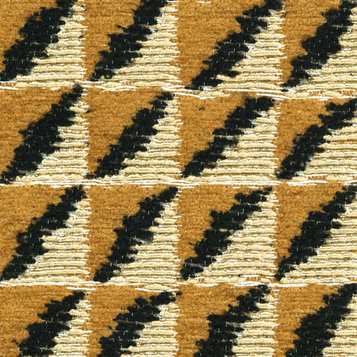 Produced in four very modern colors, Celadon, Olive Green, Bronze and Copper, the small “Berlioz” design takes this jacquard by storm. Its gold, satin-coated yarn is combined with its colored base, to compose a web on this geometric checkerboard, creating sophisticated matte and lustrous effects. A third color adds depth to the pattern. As for all our creations, this jacquard, woven in Italy, was firstly developed by our design studio.