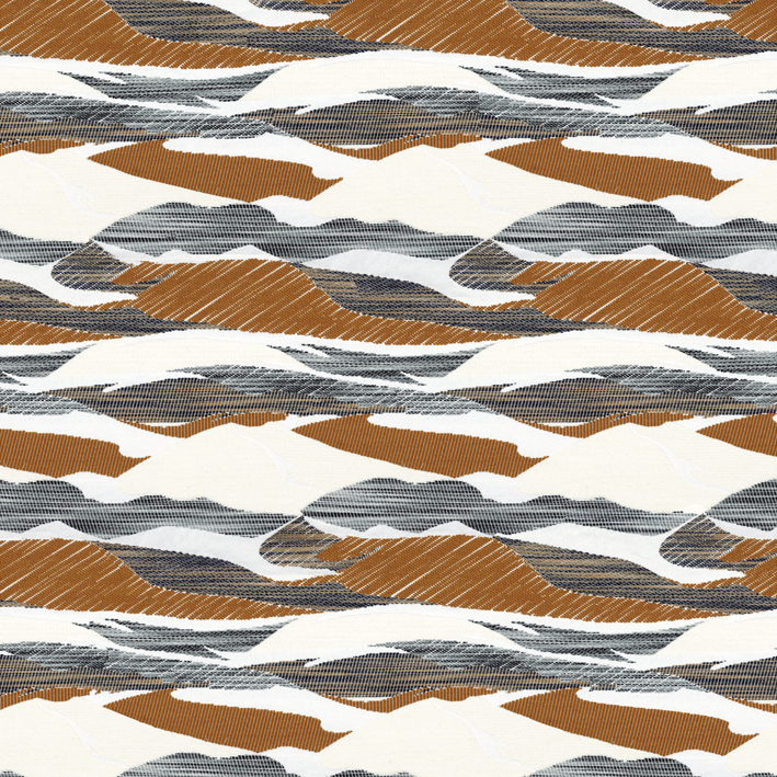 The “Sept collines” fabric invites you to meander through a dream-like landscape of wool and cotton on a fine cotton-satin warp – of which 40% is upcycled. The three-dimensional construction of the fabric aims to reproduce the effect of hand-woven carpets. The undulating and marbled finish of the design is the result of painstaking color work in the MISIA workshops.