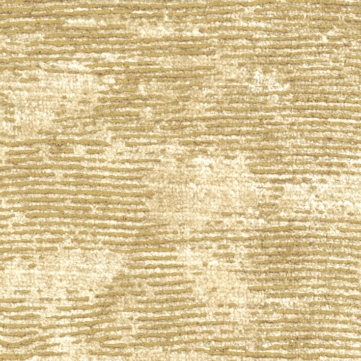 Like the footprints of a giant deity, the iridescent pattern on this printed cotton and viscose velvet is the outcome of using a traditional frame printing, which stamps the fabric and allows golden printing to settle in the surface of the velvet. A “Stone Wash” finish washes and brushes the velvet fibers using pumice stones, to give a vintage and seemingly crackled finish. The three colors of Ecru, Greige and Bronze have a gold lamination; the three others, Silver, Moorish Gray and Misia Blue have silver lamination.