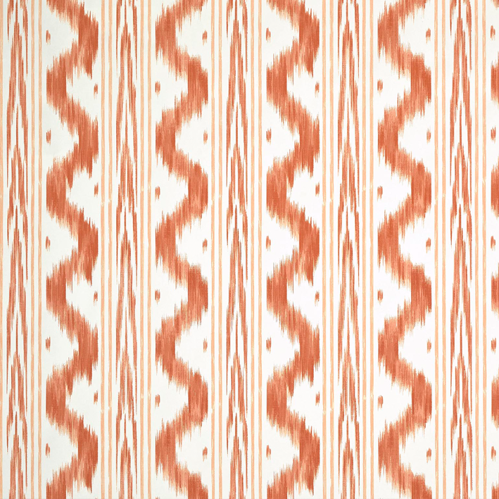 18세기 프랑스의 Toile de Nantes 또는 이카트 패턴이 느껴집니다. 시간의 흐름에 구애받지 않는 대표적인 패턴으로서, 넓은 폭의 non-woven 배킹에 스크린 프린트되었습니다. 월페이퍼 롤과 패브릭으로 만나볼 수 있습니다.