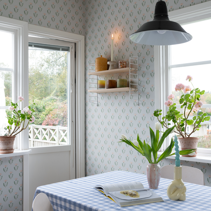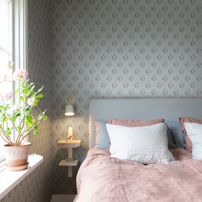 This design is part of the collection inspired by Carl and Karin Larsson, an iconic and beloved Swedish design family active in the 19th century. The design duo still inspires the whole world with their artistry, their home, and their way of living. This hand-painted design adds beauty to your home. Maskrosen is a natural and simple design yet a wallpaper design that communicates a cool and stylish attribute and adds beauty to your home. The stylized hand-painted dandelion wallpaper design is a symbol of the Karin & Carl Larsson family. They were the great influencers of their time. This flower is overlooked by so many but was uplifted by Carl as a symbol for the family’s fighting spirit and stubbornness. If you visit their home, Lilla Hyttnäs in Dalarna, don’t forget to look at the very top of the wall in Carl’s studio, where you can find stylized hand-painted dandelions. Our wallpaper version of dandelions also comes in pink.