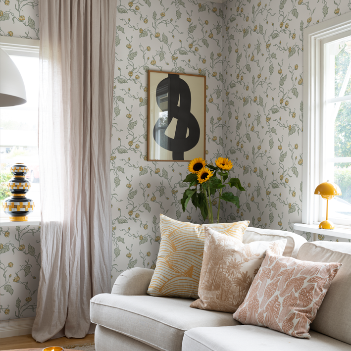 This design is part of the collection inspired by Carl and Karin Larsson, an iconic and beloved Swedish design family active in the 19th century. The design duo still inspires the whole world with their artistry, their home, and their way of living. In the Larsson's household, every occasion was worth celebrating, preferably with a costume party! In the painting "Congratulation" (Gratulation), Karin is being celebrated by the Nix and his children. It’s Carl’s summer model Elmire who is dressed up as the Nix together with her friends Suzanne and Helga. Together, they celebrate Karin on her name-day with garlands of yellow water-lilies.