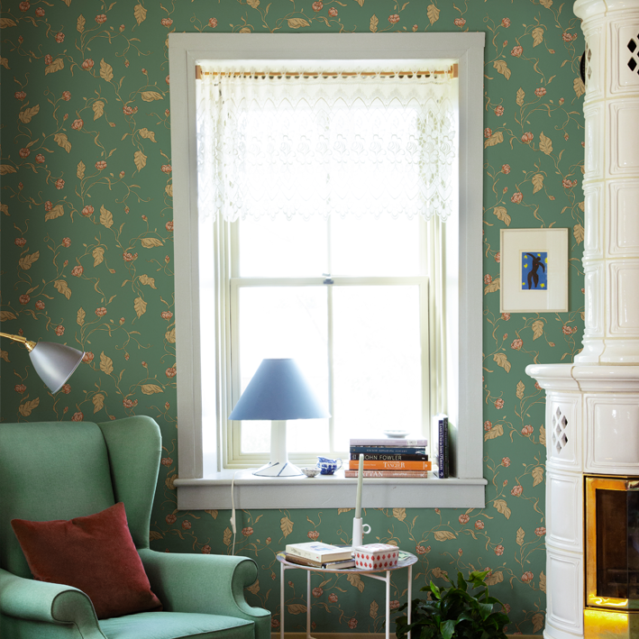 This design is part of the collection inspired by Carl and Karin Larsson, an iconic and beloved Swedish design family active in the 19th century. The design duo still inspires the whole world with their artistry, their home, and their way of living. In the Larsson's household, every occasion was worth celebrating, preferably with a costume party! In the painting "Congratulation" (Gratulation), Karin is being celebrated by the Nix and his children. It’s Carl’s summer model Elmire who is dressed up as the Nix together with her friends Suzanne and Helga. Together, they celebrate Karin on her name-day with garlands of yellow water-lilies.