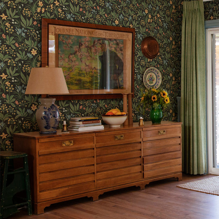 This design is part of the collection inspired by Carl and Karin Larsson, an iconic and beloved Swedish design family active in the 19th century. The design duo still inspires the whole world with their artistry, their home, and their way of living. This hand-painted design adds beauty to your home. In 1899 Carl published an album with watercolor paintings from the family's home and life at Lilla Hyttnäs. The album, called “ Huset i Solen” (The house in the sun) became a huge success story and is said to be the very first media story from a Swedish home. This hand-painted wallpaper design captures the Swedish summer with all its splendor and blooming flowers, inviting you home for a Midsummer dance in the lush grass. This exquisitely crafted wallpaper comes in three color versions, this is what we call Swedish wallpaper art.