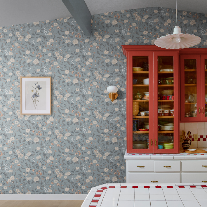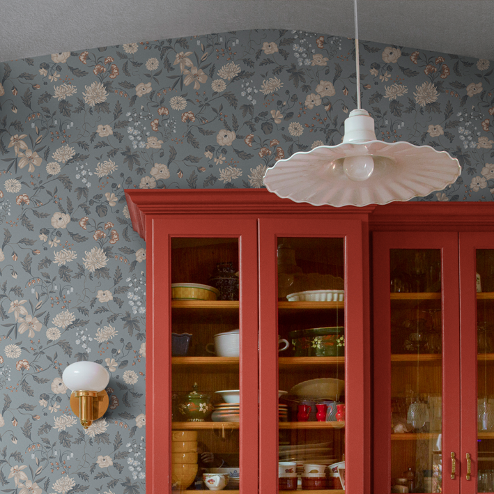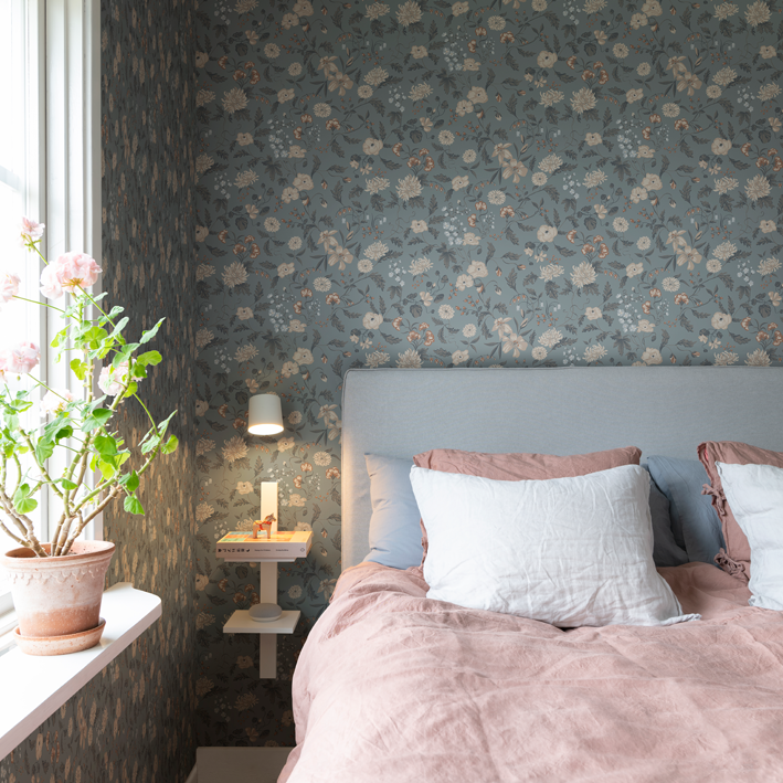 This design is part of the collection inspired by Carl and Karin Larsson, an iconic and beloved Swedish design family active in the 19th century. The design duo still inspires the whole world with their artistry, their home and their way of living. This hand-painted design adds beauty to your home. This design gives you the possibility to create both intense coziness and an airy feeling to a bedroom. This delicate and decorative wallpaper gives a sense of enlarging a space and an airy feeling of being outdoors during the lovely Swedish summer. The creative couple Karin & Carl Larsson loved to surprise and show appreciation for each other through creative expressions. The wallpaper “Till Karin”, is a new chapter of the original wall painting located above Karin’s bedroom door in their inspiring home, Lilla Hyttnäs. This painting was a gift and a declaration of love to Karin from Carl Larsson in 1894 representing flowers from their beautiful garden. Carl and Karin Larsson often painted decorative murals directly on the walls also involving their four children in the process. The name of the wall mural is shared with their daughter Suzanne, who co-created a flowery border in her own room at their iconic home.