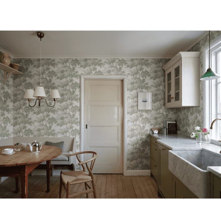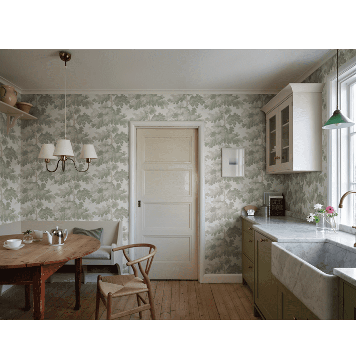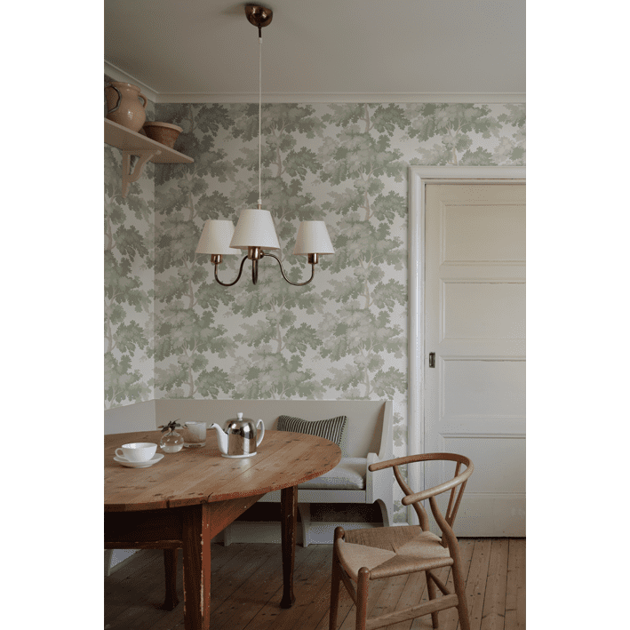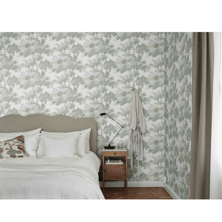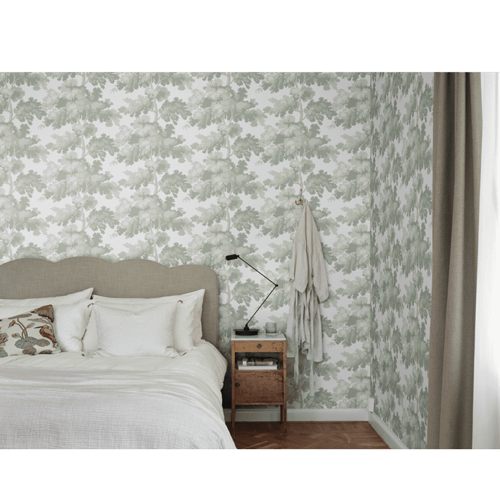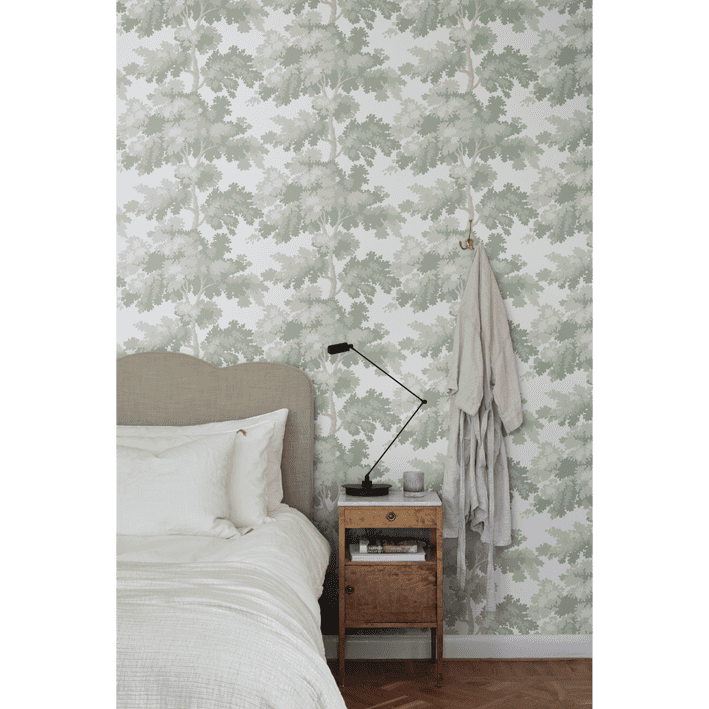 Raphael is one of our most popular wallpapers. The pattern gives you treetops in a wide range of color combinations. The inspiration for this pattern was partly taken from Central Park in New York - a leafy park surrounded by glass-and-concrete skyscrapers and a beautiful contrast to the bustling city. The pattern is also inspired by antique tapestries, where stylised leaves are often shown in fields of light and shade. Raphael, Light Green comes in delicate soft shades of green.