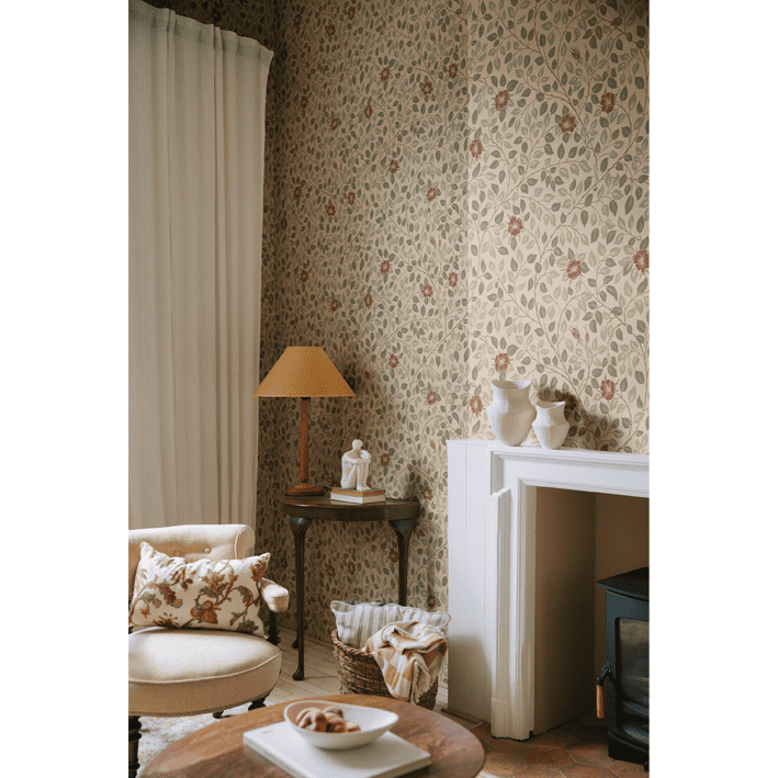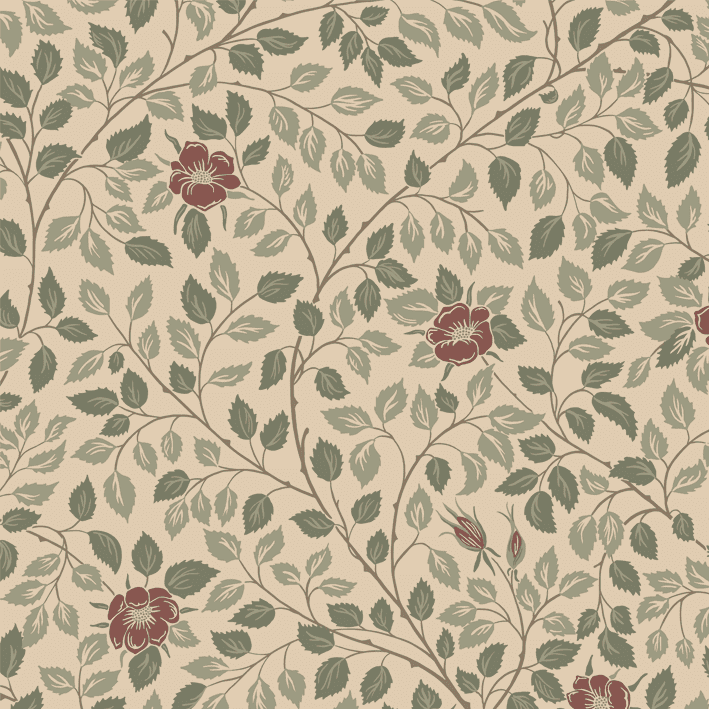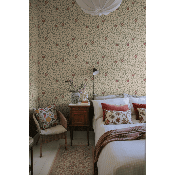The Castle Rose pattern is named after our Swedish royal family's summer residence, Solliden on Öland. Winding and enveloping in pleasant colors, it creates a restful patterned room. The Spring Green color scheme comes in the sweetest, softest shades of green, beige, pink, and burgundy.