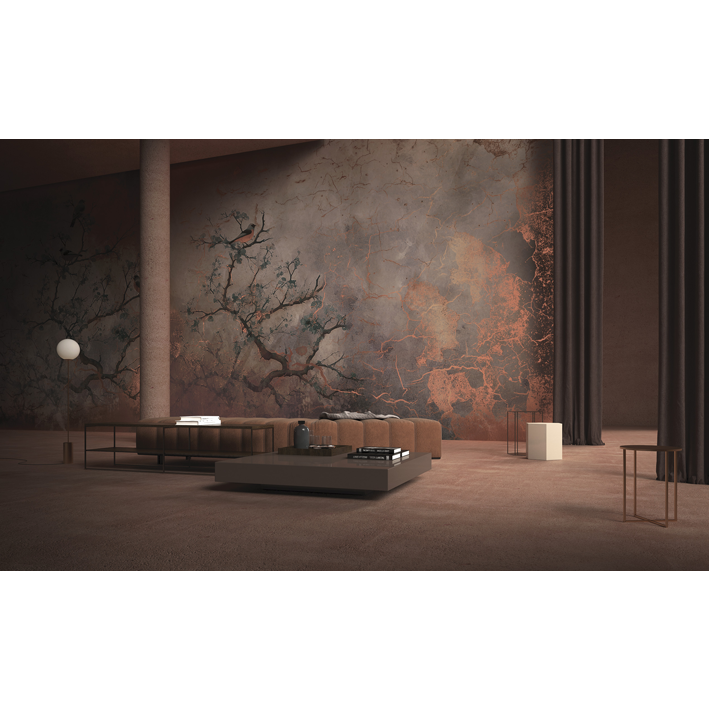 This collection features floral designs in earthy hues, infused with a subtle, surreal elegance reminiscent of shapes found in seashells or coral reefs. The intricate patterns, rendered on non-woven metallic material, offer a sophisticated and refined finish. Each design combines natural inspiration with a touch of class, creating a visually captivating and upscale aesthetic.