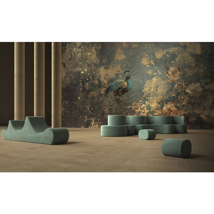This collection features floral designs in earthy hues, infused with a subtle, surreal elegance reminiscent of shapes found in seashells or coral reefs. The intricate patterns, rendered on non-woven metallic material, offer a sophisticated and refined finish. Each design combines natural inspiration with a touch of class, creating a visually captivating and upscale aesthetic.