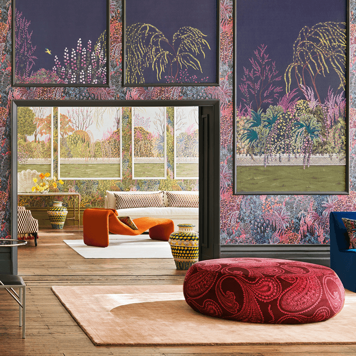 Comprised of 8 drops across a 2-roll set, Reverie is both a repeatable landscape as well as a striking panel that can be used in isolation for a unique backdrop terrain.