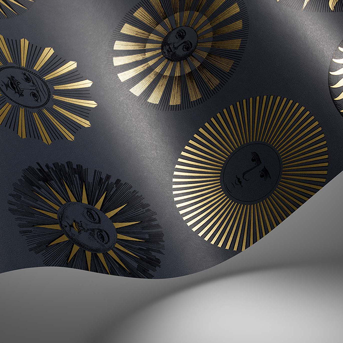 A classic of the Atelier's portfolio, the sun occupies a privileged position in the Fornasetti repertoire of natural forms and is one of the major motifs in the Atelier's visual universe. A predilection in part justified by the fact that for years in the early 1940s, at the request of Gio Ponti, Piero Fornasetti designed almanacs on a lunar theme to be given as Christmas gifts.