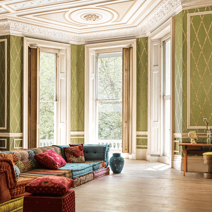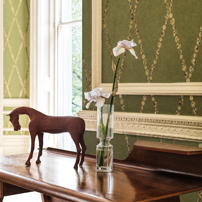 Evoking a visual universe that mixes various eras, this wallpaper illuminates a room with an eternal beauty.