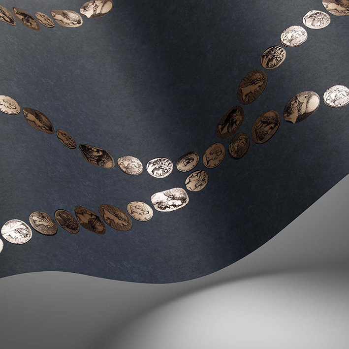 Evoking a visual universe that mixes various eras, this wallpaper illuminates a room with an eternal beauty.