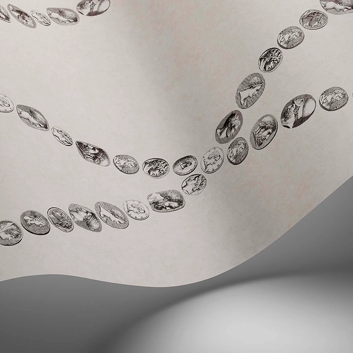 Piero Fornasetti was the consummate collector with a plethora of cameos certainly forming part of his vast collection of curiosities. The Cammei theme is dear to Fornasetti and is an homage to Classicism.