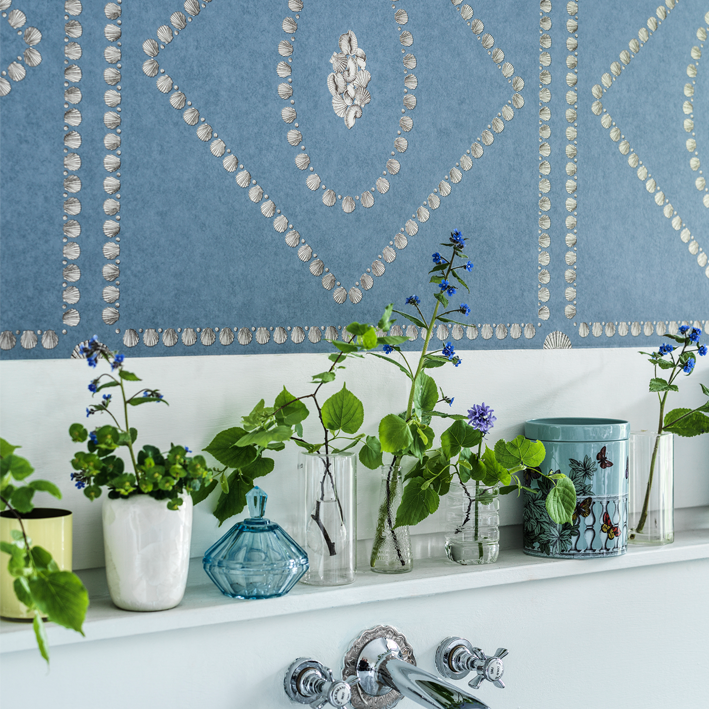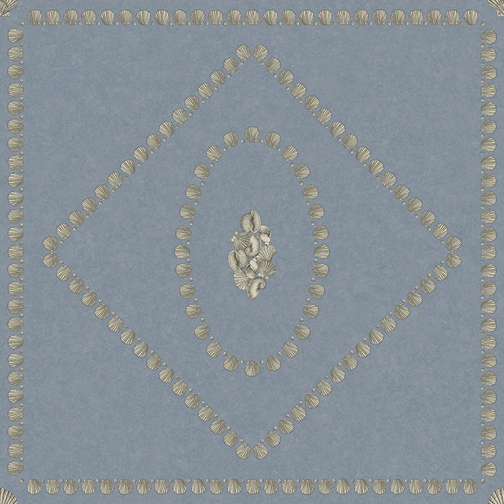 Forming a geometric repeat of shell-laden boxes and diamonds, Conchiglie is full of exquisite detail, providing new inspiration every time the design is viewed.
