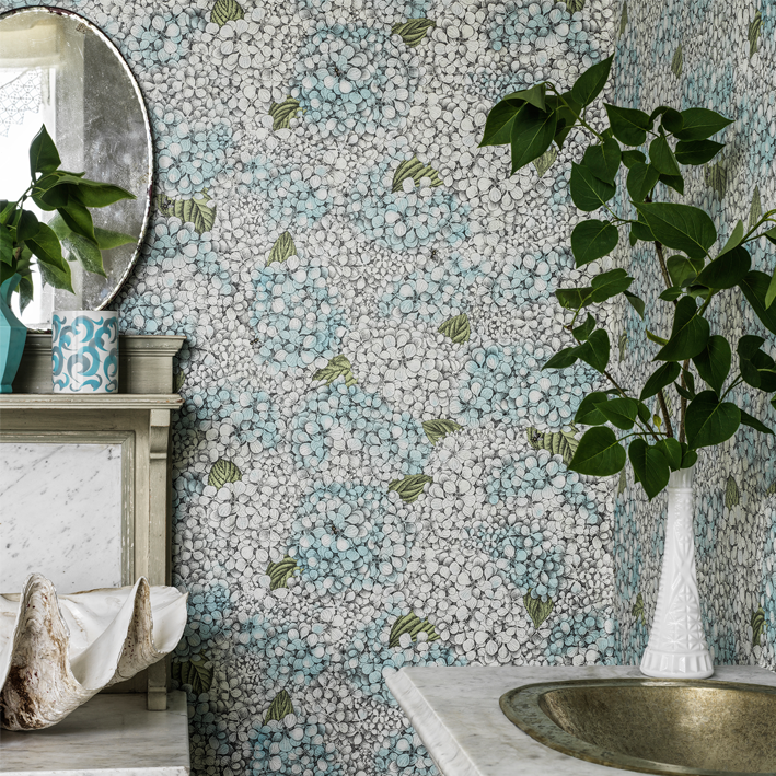 Stemming from the original ‘Ortensie’ design, Barnaba Fornasetti created a dense bouquet of petals with bees that at first covered a scarf and furniture of the Atelier. This bounteous floral print is full of life, drawing you into the garden and filling your thoughts with the sweet smells and sounds of summer. Soft pastels are reminiscent of organic Ortensia hues, whilst a simple monochrome accentuates the delicately detailed linework of this expansive design.