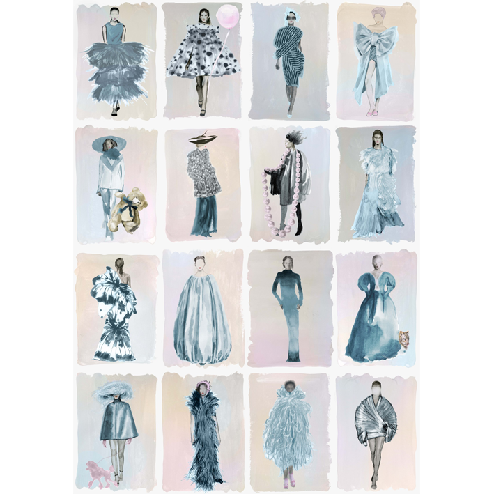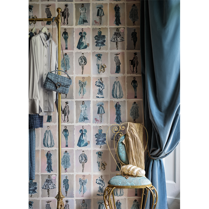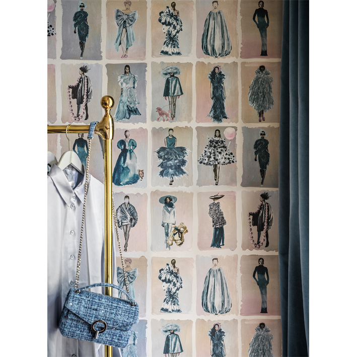 Hand-drawn and hand-painted at Cole & Son's Chelsea flagship, each of the 16 Couture Carousel 'fashionistas' represent an era in haute couture; from the 1950s and 60s, characterised by glamorous design, to the bold looks of the 1980s and 90s, where fashion was more experimental and avant-garde.