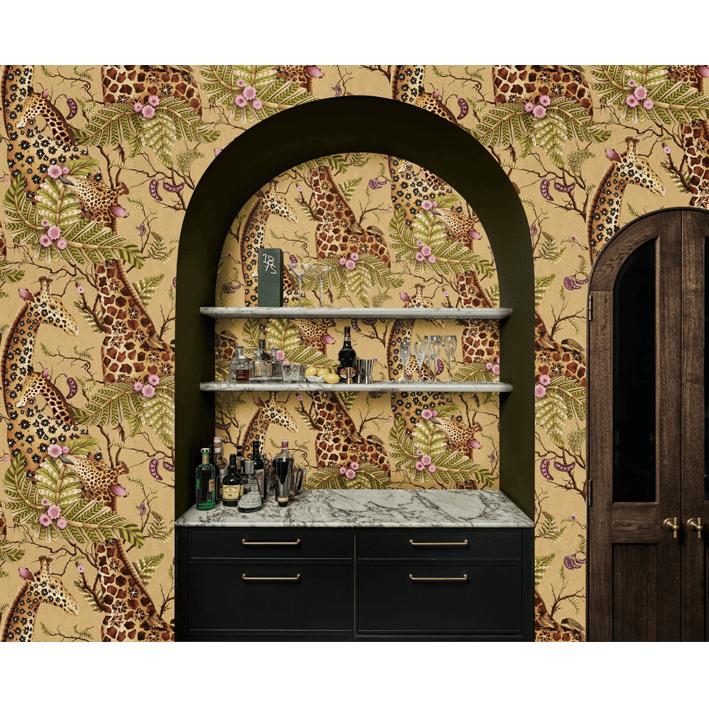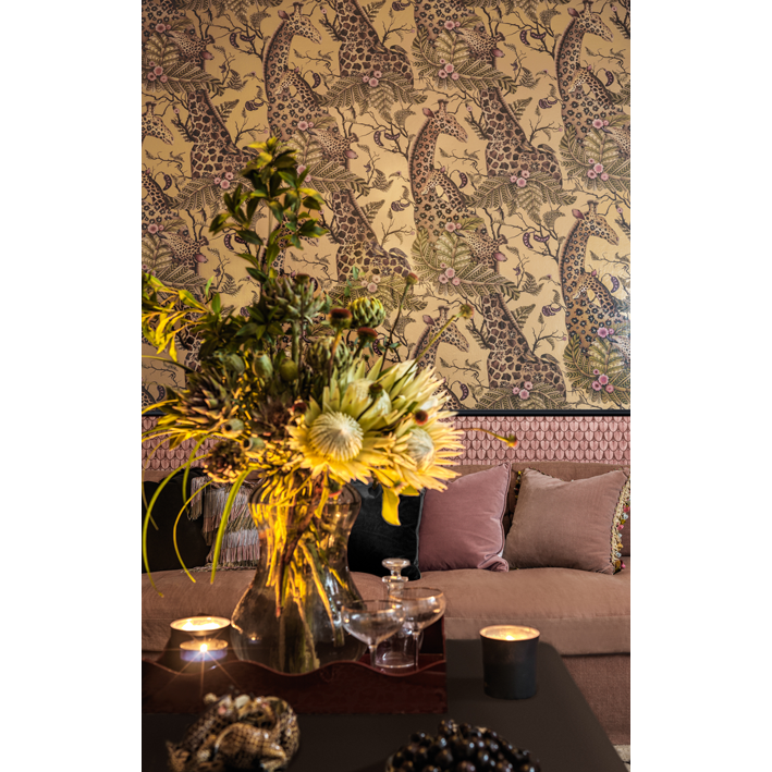 Each giraffe is embellished with incredible hand-painted details, each proudly displaying their markings. A monochromatic colourway of Pebble provides a gentle softness to the design, whilst Stone & Mulberry and Safari offer quintessential Cole & Son exceptional colour. This design is also available in a truly Royal Gilded palette that gives the scene a golden hour glow, with a subtly textured base allowing for the light to enhance each detail.