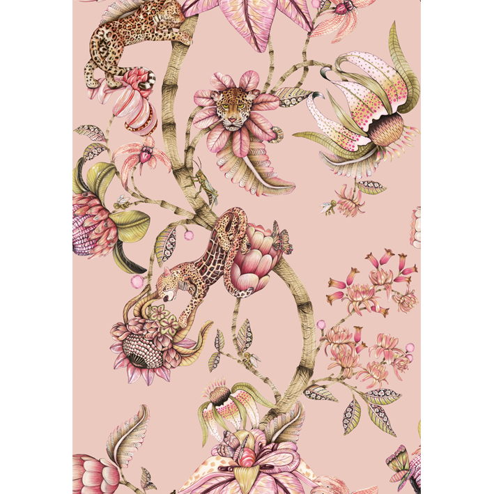 The whimsical and slightly surreal Protea Panthera is an ode to the beauty of Ardmore’s ceramics. Proudly centring around South Africa’s national flower, the protea, big cats dance along its central vine and a pair of striking green eyes look out from one prominent bloom. Surrounded by intricately embellished flowers, leaves and bugs, Protea Panthera’s grand scale captures the wild beauty of South Africa.
