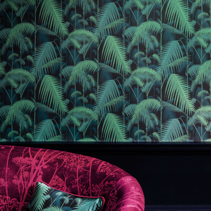 The original Cole & Son palm print, Palm Jungle is a lush, multi-layered motif of dense jungle foliage. Offered in both bold and understated palettes as well as soft neutrals for an arresting, tropical scheme in both residential and commercial spaces.