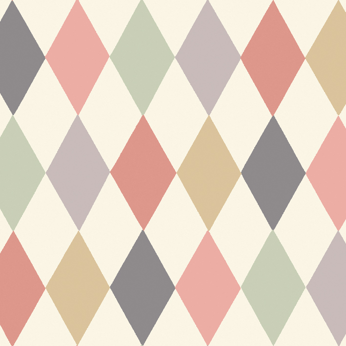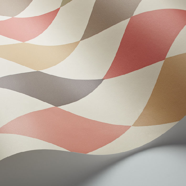 One of the signature designs within the collection, Punchinello, named after and inspired by the rascally character from the Commedia dell'arte, is a striking harlequin paper printed in contrasting colourings of chalky pastels, subtle gold, moody charcoal, soft reds, and an eye catching red and black.