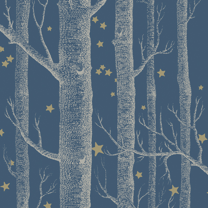 By combining the Cole & Son classic, Woods, with a magical addition our Design House artists have produced the charming and enigmatic Woods & Stars tree wallpaper. Printed in colour moods ranging from cool neutrals and metallics through to midnight blue and inky black, Woods & Stars ushers you into a fairytale woodland.