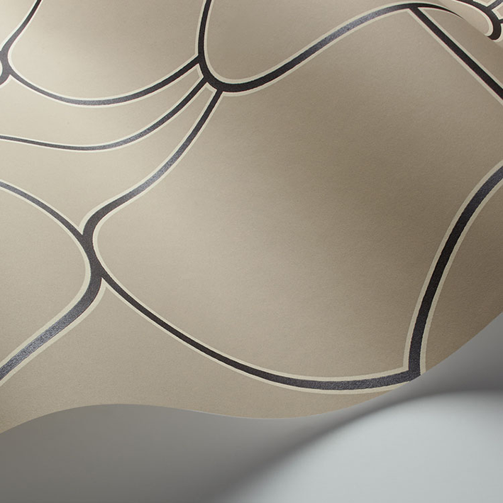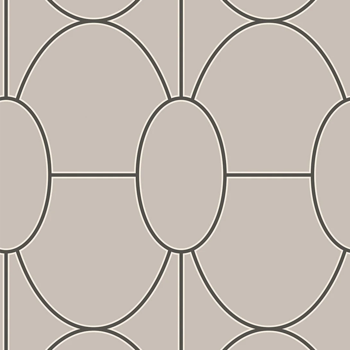 Offering a softer and more graceful take on the geometry and linear styles of the Art Deco period, Riviera features gently curved interlocking ovals printed in a softly raised textured finish. Presented in classic neutral colourings of black and white, graphite on grey, charcoal on sand, and metallic bronze on charcoal, this large-scale design creates a bold, contemporary look.