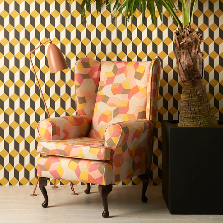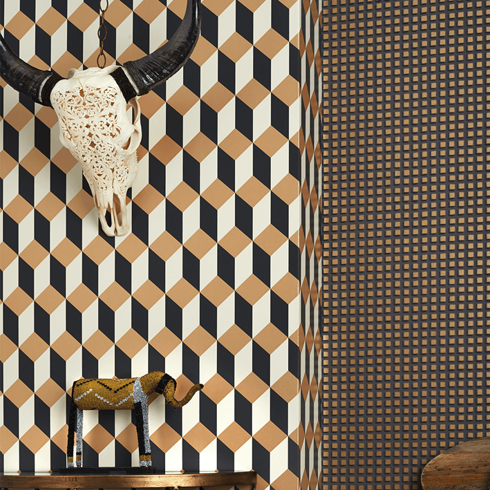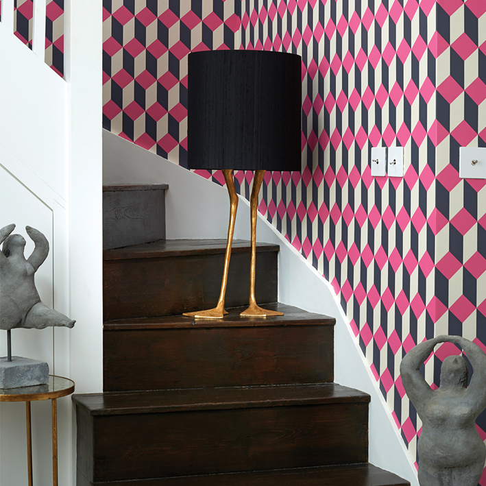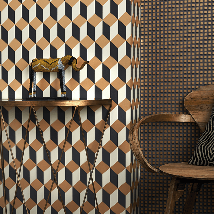 Delano, which takes its name from the famous Art Deco hotel on South Beach, takes a familiar tile motif and gives it a chic, contemporary feel. Offered in vibrant colourings, including a classic black and white, black, white and gold, a sharp yellow and pink both teamed with black, and a sumptuous indigo with gold.