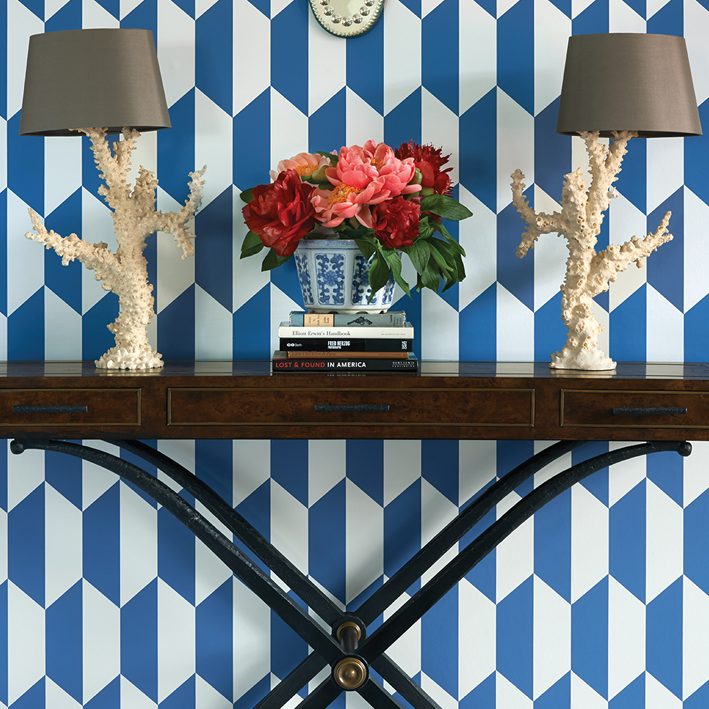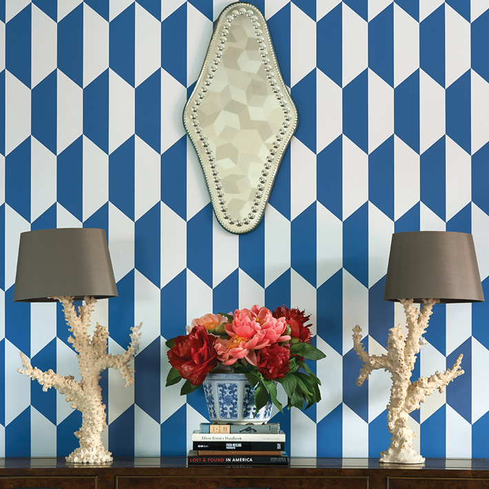심플하고도 오래 함께할 수 있는 모티브인 Tile이 안목있는 모더니스트에게 스몰 스케일 지오메트릭 디자인 옵션을 제안합니다. 컨템포러리한 네이비 블루 온 화이트, 쿨 스톤 온 화이트, 메탈릭 골드 온 샌드, 메탈릭 건메탈 온 몰 컬러로 만날 수 있습니다.