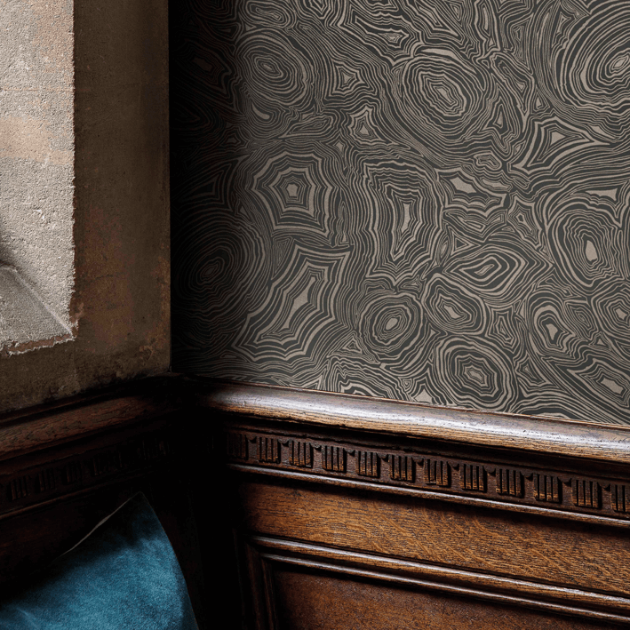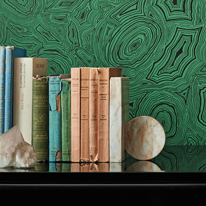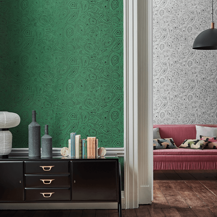 The intricate curves and ripples of semi-precious stones and fossils appear throughout Fornasetti's work, with the hypnotic curves becoming synonymous with the Fornasetti canon. The iconic Malachite is presented in unique luminous mineral shades as well as the arresting, Fornasetti classics for a captivating interior option.