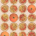 지중해의 시트러스 오렌지가 대담한 리피트로 드러나는 Arance는 Fornasetti 아카이브에서 곧잘 찾아볼 수 있는 테마입니다. 본래 1950년대의 ‘Fette d’arancia’ 트레이 위에 등장했다가 90년대에 Barnaba Fornasetti가 다시 한번 그래픽 패브릭 프린트에 새롭게 활용한 패턴입니다. 놀라운 대비를 이루는 초키 씨폼, 스톤, 깊은 잉크 그라운드 위에 블러드 오렌지와 오렌지, 레몬의 실제 컬러를 강조해서 디자인했습니다.