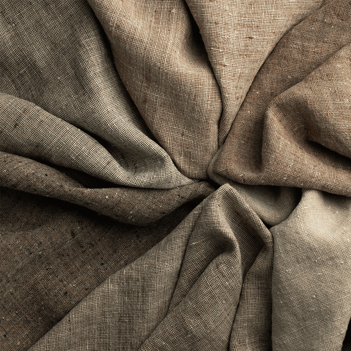 Slubby artisan linen yarns of contrasting shades combine to create a subtle tweedy cloth reminiscent of gentleman’s tailoring. Relaxed yet refined Cave Cloth highlights the beauty of raw fibres. Natural irregularities add character and texture to this medium-weight, versatile fabric that would work just as well in contemporary or classic schemes. Available in six earthy neutral colours.