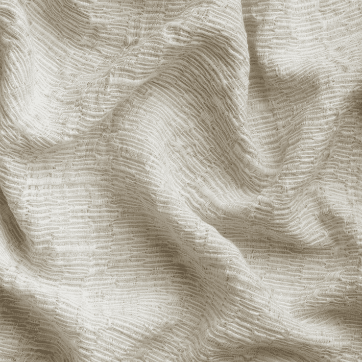 This double width sheer is exquisitely crafted using an ultra-fine linen warp interwoven with wool yarns that meander across the surface to create a fabric reminiscent of delicate root structures. Specialist finishing gives this fabric natural irregularities and character that create delicate shadows as light passes through. Perfect for lightweight and sheer curtains and blinds.