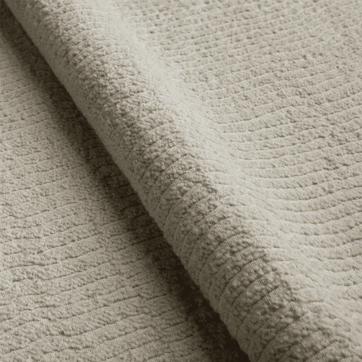 Fine linen yarns are combined with chunky wool to create a heavily textured cloth with beautiful movement. An organic pattern of vertical rivulets reminiscent of mangrove roots meander across the surface creating a cloth with a sense of both structure and movement. This durable and gutsy fabric is suitable for heavy upholstery and is available in four neutral shades from deep brown to soft ecru.