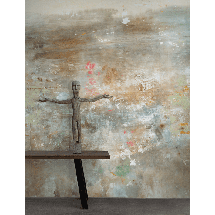 Oh La La is an innovative cream & brown distressed shabby chic wallpaper created by Kiki Slaughter. It offers a glimpse into the organic, experimental, and textural aspects of the artist’s work. Originally built as a triptych of canvases, the artist scraped, poured, layered, and manipulated paint to create this brown and cream wallpaper that offers an abundance of colour and texture.
