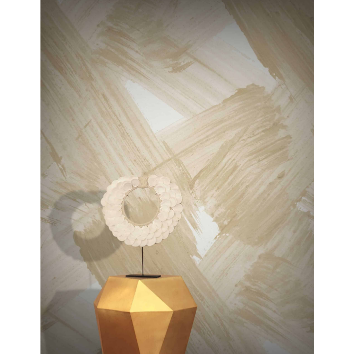 Intense brush strokes with grains of paint visible on the white background, this cream contemporary abstract bold wallpaper shows an artist at work. Plato wallpaper in sand is bold but includes fine details that standout in any room of a modern home.