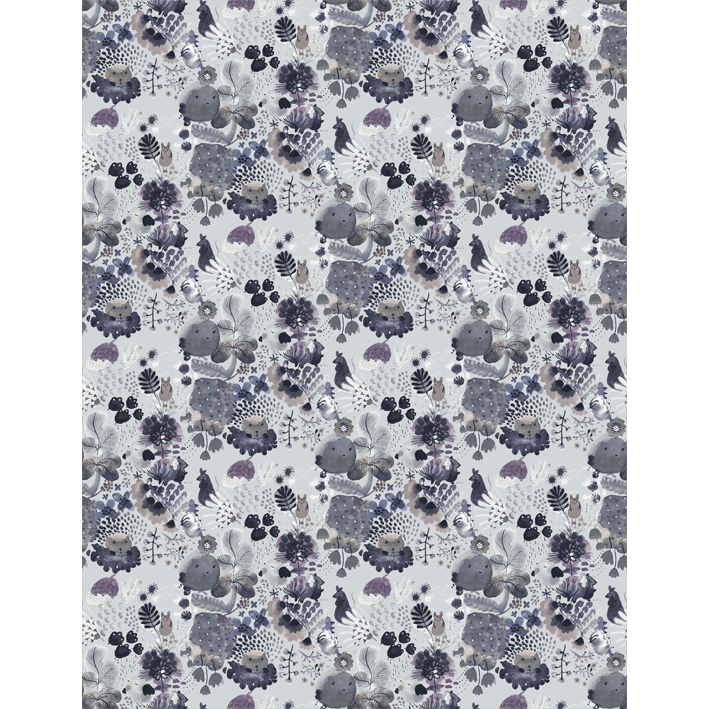 Pom Pom wallpaper was designed by renowned artist Outi Virtanen and is the ideal selection for a child’s bedroom to add a touch of nature to an indoor space. The grey colourful watercolour kids wallpaper features muted pastel tones that include whimsical forest creatures in their own habitat.