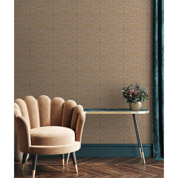 This pink & gold vintage pattern wall mural carries an elegance and style that will brighten up any room. The Albion metallic pattern wall mural uses metallic burnish to bring forth all the details of the flowers to create a luxurious atmosphere.