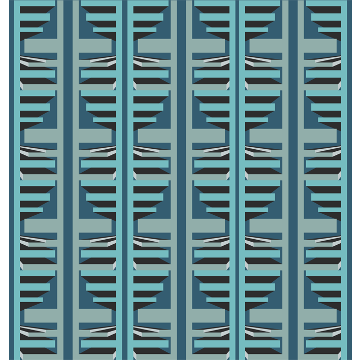 If you are looking to create a retro feel geometric style, this wallpaper designed by artist Tim Muddiman is the perfect choice. The blue funky geometric wallpaper design features blocks, lines and angles that create a rhythmic pattern across the design. Clever use of colour creates shadow that draws us deeper into the rectangular latticework. Use this blue wallpaper as inspiration in a living space and coordinate with complementary blue soft furnishings.